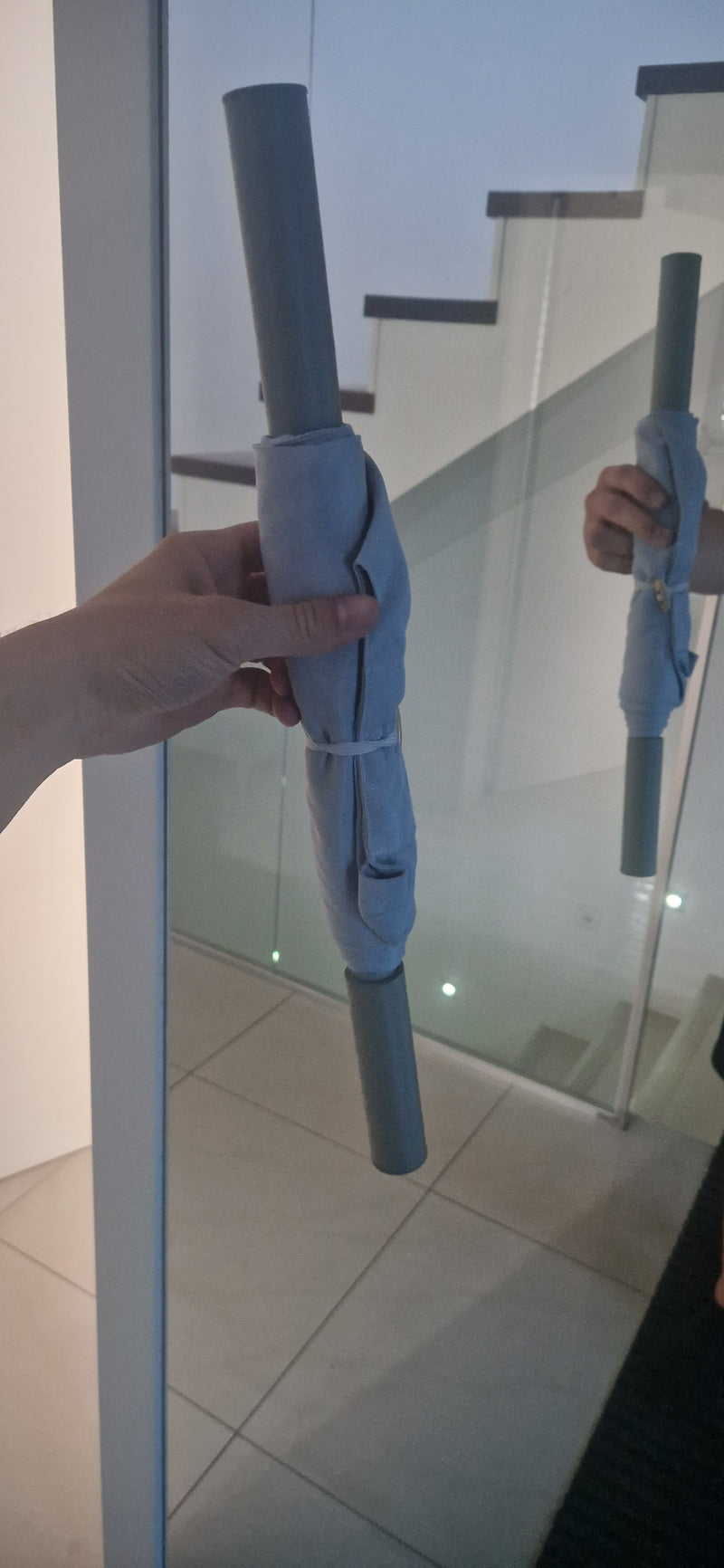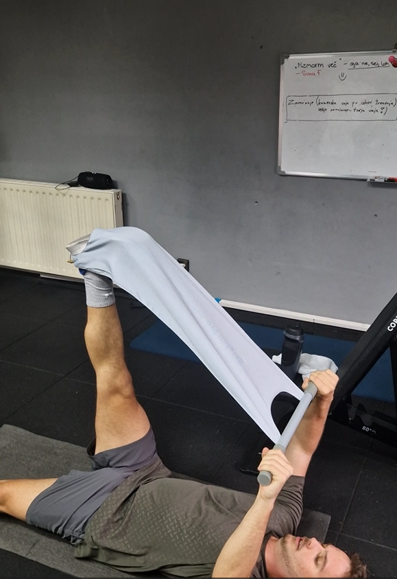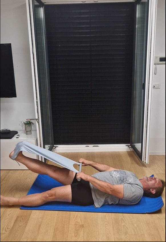 Lie flat on your back and relax. Unroll the device, placing the belt end